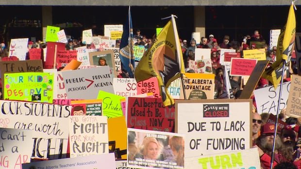 More than 20,000 residents of Alberta gathered in the province’s two largest cities on Sunday, with many displaying flags or picket signs while demanding increased government backing for public education. These rallies occurred a day before the scheduled strike of 51,000 teachers in Alberta. In the event that a last-minute agreement is not reached between the teachers’ union and the provincial government, Monday will witness the first provincewide teachers’ strike in Alberta’s history.
